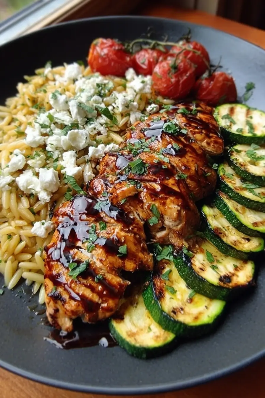 Balsamic Glazed Chicken & Orzo with Feta & Grilled Zucchini – 30-Minute Irresistible Dinner