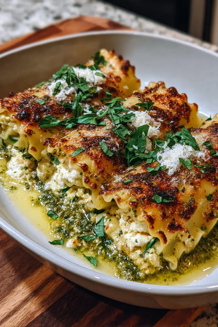 Burrata & Zucchini Lasagna Roll-Ups with Lemon Pesto Drizzle are light, creamy, and packed with garden-fresh flavor. Tender lasagna noodles are layered with ricotta, Parmesan, and thin-sliced zucchini, rolled up, then baked to golden perfection and topped with melty burrata and a zesty lemon pesto drizzle. A comforting yet elegant dish perfect for summer dinners, gatherings, or a cozy night in.