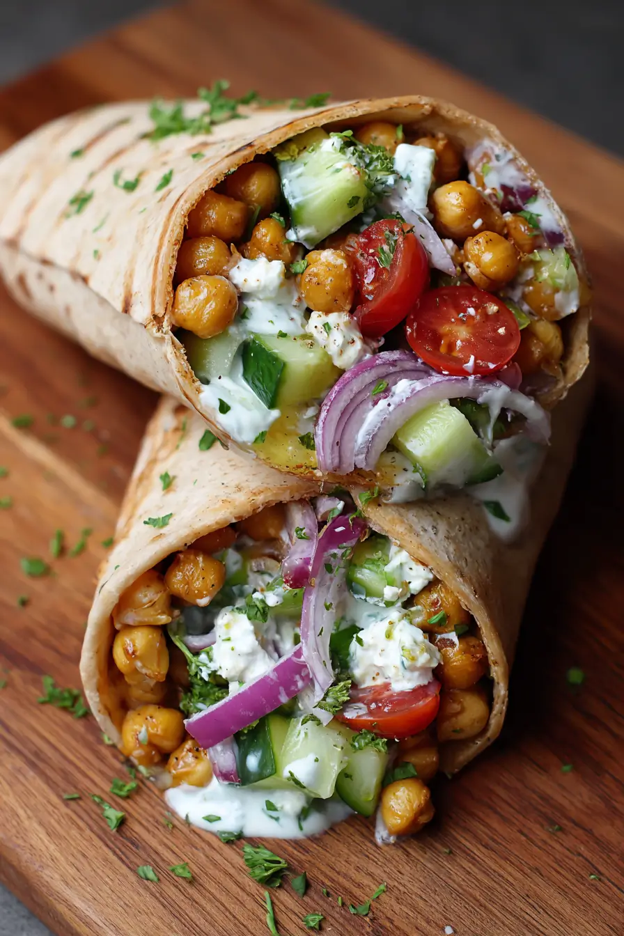 Chickpea & Feta Wrap with Veggies & Yogurt Sauce—let me tell you, this is one of those meals that makes you smile before the first bite. Honestly, I first threw this together on a rushed weeknight, thinking, “Meh, it’ll do,” and ended up finishing the whole wrap in record time. The chickpeas are hearty, the feta adds that perfect salty tang, and the yogurt sauce? Oh, it’s like a creamy hug in every bite. Crunchy cucumber, sweet cherry tomatoes, and a hint of fresh parsley make it feel bright and fresh. You’ll want to make it again immediately. Whether for a quick lunch or an easy dinner, this wrap has it all. And hey, if you want the recipe straight to your inbox, just subscribe below—seriously, you don’t wanna miss it.