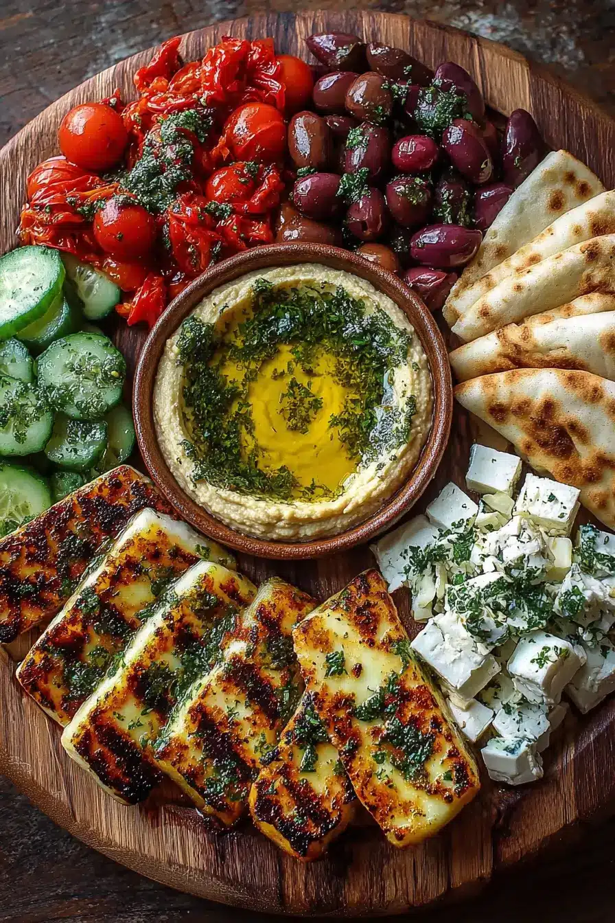 What really makes a Greek Halloumi Mezze Platter shine is the balance of flavors. You get: