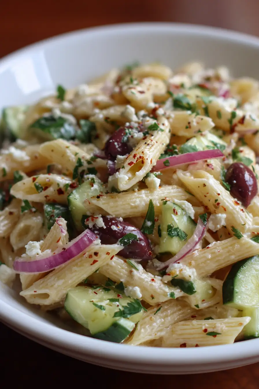 Greek Pasta Salad with Feta Olives & Cucumber – A Fresh and Flavorful Mediterranean Favorite