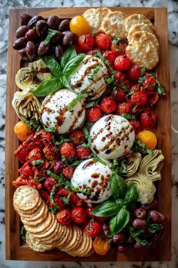 This board isn’t just indulgent—it’s packed with healthy fats from olive oil, protein from burrata, and vitamins from fresh vegetables. It’s a little Mediterranean magic in every bite.