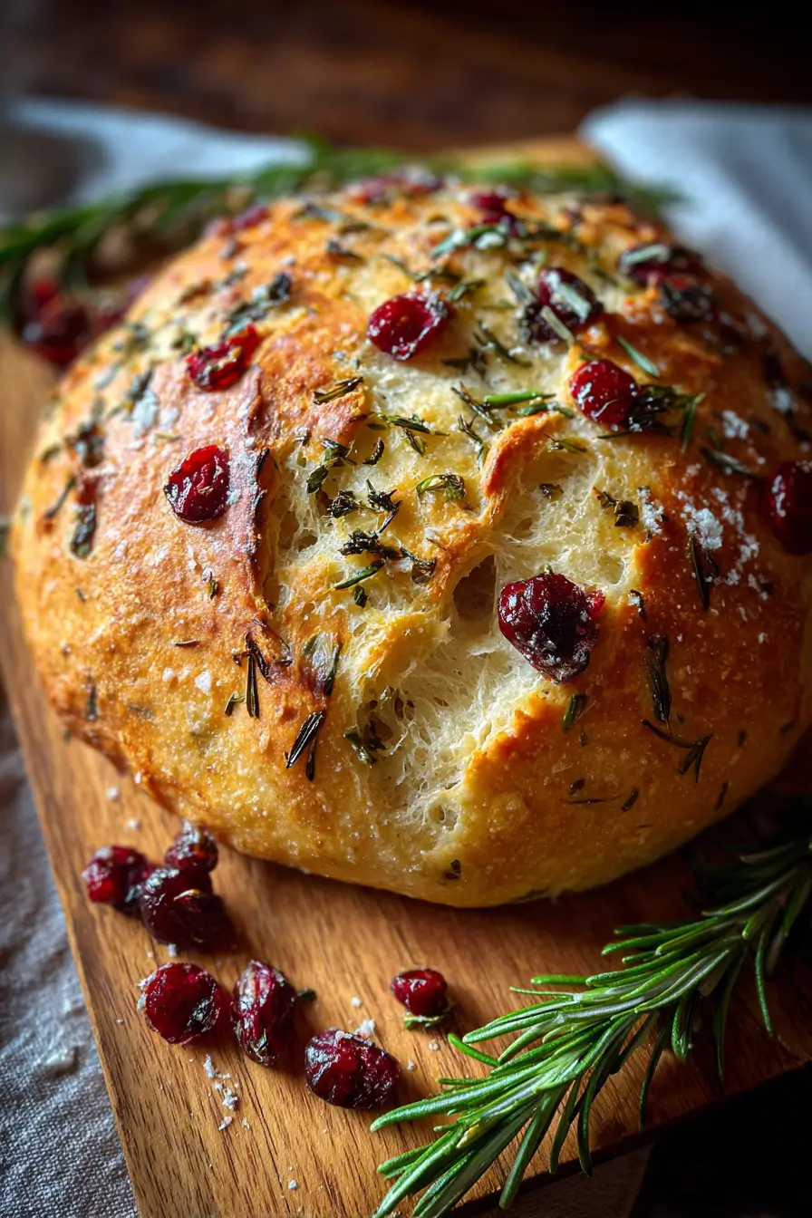 We’re talking about a low-effort, high-reward method. You stir it together in five minutes, forget about it overnight, then pop it in the oven and out comes rustic perfection. Even better? The cranberries and herbs infuse every bite with layered flavor.